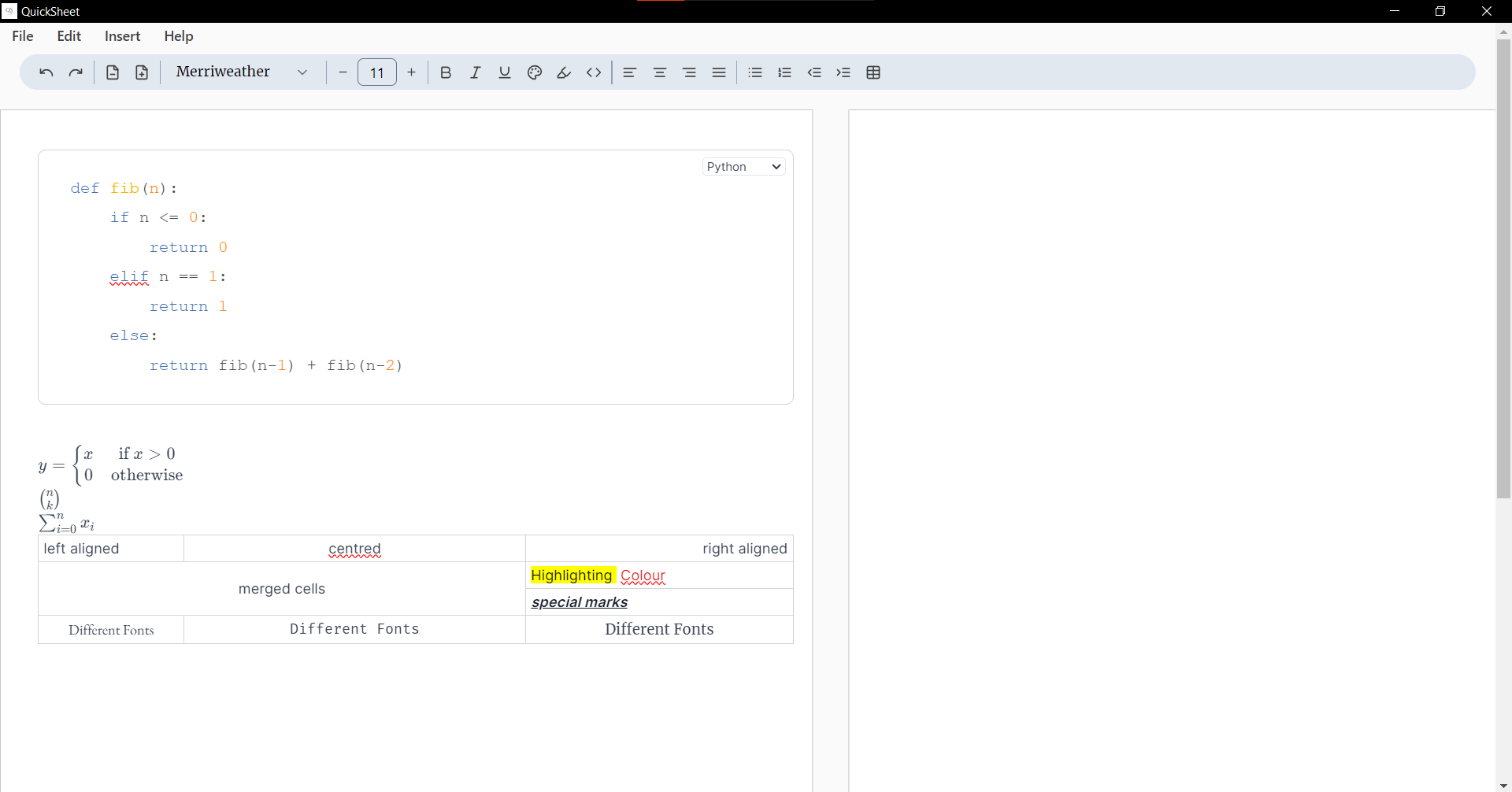 QuickSheet is a desktop application tailored for students who need to create cheat sheets efficiently and effectively. The application supports rich text editing, code blocks, mathematical equations, and more, all while ensuring that cheat sheets fit within the two-sided A4 format often required for exams. This project has been jointly developed by me and Zachary Kang